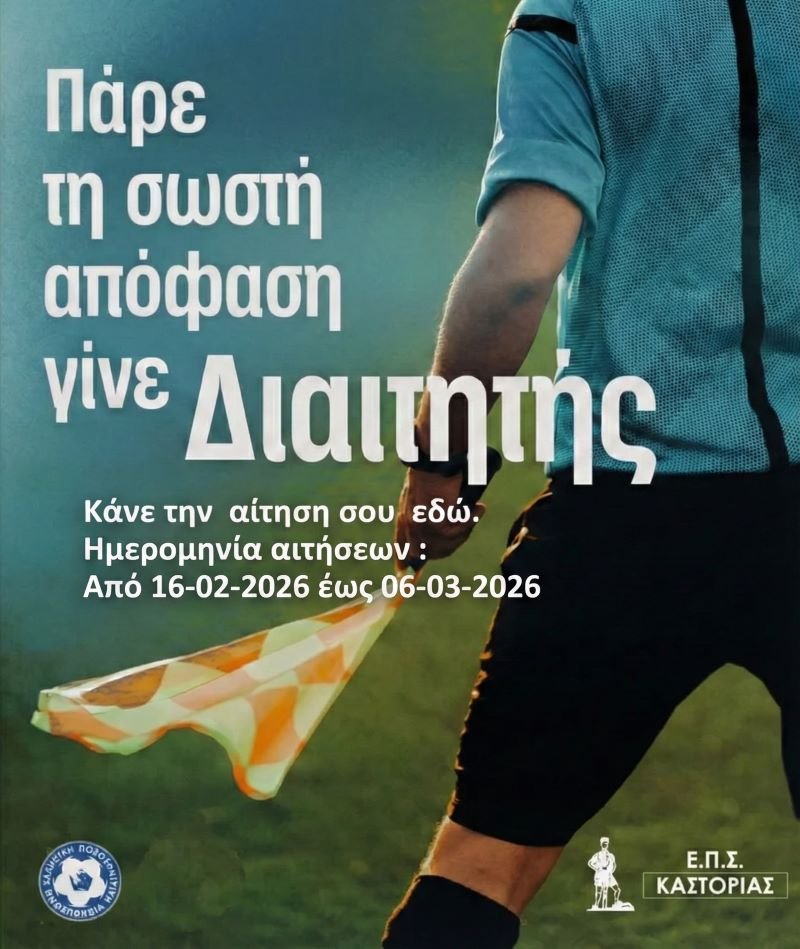 Με απόφαση της Επιτροπής Πρωταθλημάτων και Κυπέλλου της Ε.Π.Σ Καστοριάς ο προγραμματισμένος αγώνας Κ-14 ( Νταηλακης - Καστοριά 1980 ) της 20/02/2026 αναβάλλεται λόγω ακαταλληλότητας…