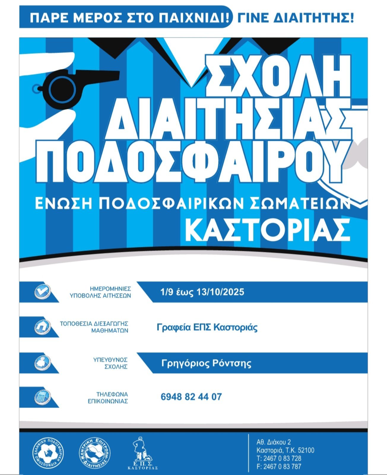 Κάλεσμα από την Επιτροπή Διαιτησίας της ΕΠΣ ΚΑΣΤΟΡΙΆΣ προς όλα τα ποδοσφαιρικά Σωματεία του νομού Καστοριάς αλλά και σε όσους και όσες αγαπάνε το ποδόσφαιρο !